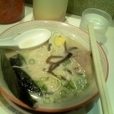 ラーメンを注文、具は千切りにされたきくらげと薄く切ったチャーシューに煮卵半分、チャーシューは硬目でパサパサし味がなくあまり美味しいとは言えません、煮卵は黄身がしっかりしていて全体的に味が良くしみていて非常に美味しいです。
