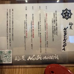 | メニュー | メニューの写真を見る 濃厚鶏白湯NOBUNAGAラーメン 980円 |
