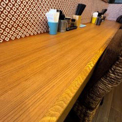 綺麗な店構えで、内装のセンスもいい。居心地もよく、店内のTVから流れる夕方のニュースの情報がよく耳に入ります。