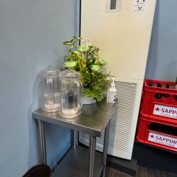 木目調のテーブルに、ステンレスの仕切りを組み合わせたカウンターは、シ... 続きを見る