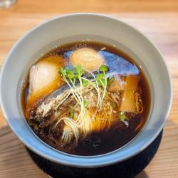 | メニュー | メニューの写真を見る 煮干しそば(黒)950円 |