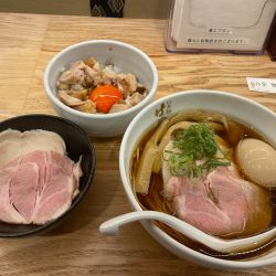 今日は、特製醤油らぁ麺(チャーシュートッピング)+マキシマム親子丼をいただきました。