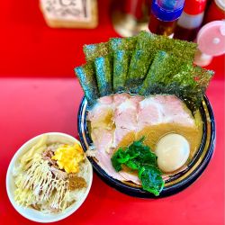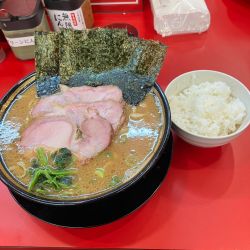 麺は短めの中太.家系らしいプリっとしたやつ.体感140g.スープは豚骨がしっかり濃い.醤油がすこぶる強い.濃いなと思いながらも飲んでしまう.チャー... 続きを見る