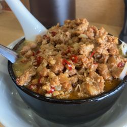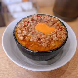 牛肉がゴロゴロ入って旨そう。スープはピリ辛で牛肉麺特有のスパイス系はかなり抑えられて安心しました。牛肉はスジ肉か?本当にたくさんあり満足。ここだけのまぜそばもあったので次回食べよう。