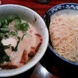 魚介が強く、思ったほどラー油を感じない。そこそこ辛い感じはあるが、基本は豚骨魚介。スープは意外と少なく、普通盛りなので、どんどん減っていく。