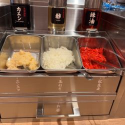 本日はコチラ「元祖油堂 羽田空港第1ターミナル店」へ伺い、「油そば+Cトッピング」を。更にはメンマが¥50だったので、エクストラトッピングして頂いて参りました。