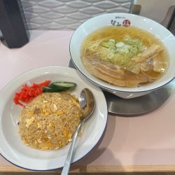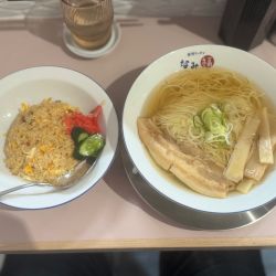 スープは、薄らと黄色味を帯びつつ透明度の非常に高い清湯。表層の液体油は極少量。