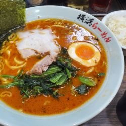 京急線弘明寺(ぐみょうじ)駅から30秒、駅前通りに面してあります。2階建ての建物の1階、オレンジ地の看板、オレンジ地ののれん、店頭壁にメニュー掲示、窓・戸ガラス。