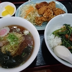 水戸藩ら~めんは醤油ベースのさっぱりしたら~めんです。丼は青野菜中華丼でほうれん草と鶏肉の甘い餡でおいしい!
