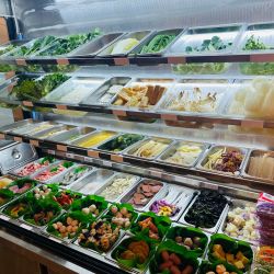 大量の選択肢の中から好きな具材をボウルに投入し会計。具材は100gあたり360円で、420gだったので首記の価格に、会計時には「辛さ:中辛、スープ:マーラー味、麺:刀削麺、ネギ:あり」でお願いしました。