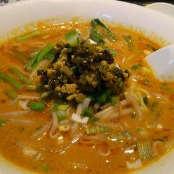 濃いめの芝麻醤が細麺に絡みます。辛さはあまりなし。