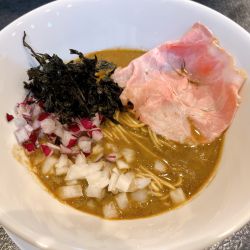 かなり濃厚な煮干しのスープでドロドロです 玉ねぎトッピングしましたが、追加でしなくてもよかったなぁと思いました チャーシューはレアチャーシューでとてもおいしかったです バラの海苔といったところでしょうか かえ玉して腹パンパンです 濃厚の濃さを選べるみたいで 真ん中のにしてみたいと思います 塩はまだ食べてないので、今度は塩を食べてみたいです 天使も企画で、厨房の手際も良く、親切だ... 続きを見る