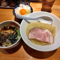 豚バラチャーシュー、白ネギ、もやし、わかめ、メンマ、かまぼこ、ゆで卵半分、ひきわり納豆