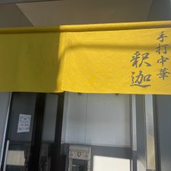 なぜ釈迦?と、とても不思議で、訊けばいいのだが聞かなかった。接客は若いお姉さん担当で、笑顔でこちらを直視するのでちょっと焦るほど。カウンター席に座ると、厨房との境にすだれが立てかけてあって、よーく見るとなんとなく様子がわかる。