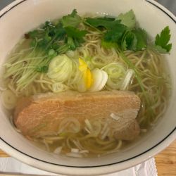 5分弱で着丼。クリアなスープ。トッピングに柚子、三つ葉、貝割れ、ネギと和食っぽい雰囲気。お吸い物を目指したとい... 続きを見る