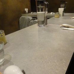 開店時間11:00の5分程前に到着して先待ち4名に接続。後客は1人。店内は小ぢんまりとしており、コの字型カウンターが設けられている。清潔にされていて居心地は悪くない。女性3名による切り盛りで、接客は良好。