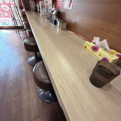 卓上にはメニュー、お水ピッチャー、ケースに入った黒いエコ箸、楊枝... 続きを見る