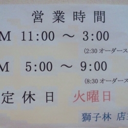 | 営業時間 | 11:00~15:00(L.O.14:30)/17:00~21:00(L.O.20:30) |