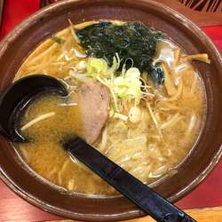 王道の中太ちぢれ麺にマイルドな味噌スープ。普通に美味い!