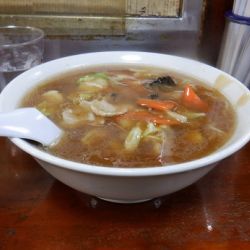 12:00過ぎに訪問。先客は5-6名だったが、じきに満席近い状態になっていた。店内は適度なスペースを有しており、1列のカウンターと幾つかのテーブル席が設けられている。大分年季が感じられるが気になるような不潔感は無く、居心地は悪くない。中国人と思しき男女数名による切り盛りで、接客は手慣れた感じ。