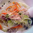 健康の文字に誘われて戴きました。スープは塩と醤油がありますがお勧めは塩とのこと、で塩にしました。細めんだからでしょうかとても速く出来上がります。白菜たっぷりのスープは他の多くの鶏塩ラーメンとは違うとてもマイルドなお気に入りの味でした。ねっとりせず最後まで飲み干せます。和風の鶏スープの少し濃厚といったところでしょうか。美味しいです。白菜とスープの他にはあまり特徴はありませんが秋葉原でのラーメンとしてはお勧めです。