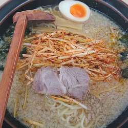 濃いめ、多め、固めで…ラーショ味ですが背脂が多く良いかな。ネギ忘れた…素直に定番にすれば良かった。餃子は冷凍ですが3個¥100なら良いなと