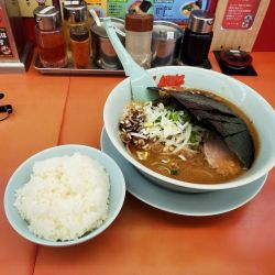 朝ラーメンを食べたくて、こちらに訪店。かなり攻めて脂多めにしたら、海苔が浮いてます。白髪ネギも白くなく味噌に染まってます。肉は角切りでゴロゴロと入って食べ応えありました。朝からガッツリですが、朝ラーメンメニューもあるようなので、今度はそちらを試そうと思います。