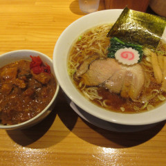 ビジュアルはごま油で和えた白髪ねぎの周りにチャーシュー、海苔、わかめが載っている。スープは白濁した豚骨スープに醤油を合わせたもので、脂と豚骨の味のバランスが絶妙だ。豚骨の味を十分に... 続きを見る