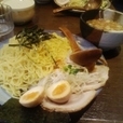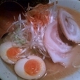 【具】チャーシュー、メンマ、もやし、かいわれ、ねぎ、のり、(味玉)。