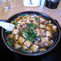 醤油スープに、甘辛な味付けをなされた挽肉からのコクが溶けこんでいてなかなかおいしい。麻婆餡自体は、ゆるめで量は少ない。ほぼストレートな細麺は、街中華にしては張りのあるタイプ。具は、先述の麻婆餡に閉じられた挽肉。ニラ。刻み葱。豆腐は木綿で、程よい柔らかさ。