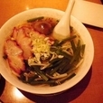 具は、ネギ・もやし・青菜・チャーシュー2枚・わんたん5個。餡のずっしりとしたワンタンは肉肉しくて美味しい。