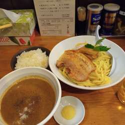 平日の12時過ぎに訪問。外待ち2名いましたが、回転が速く、すぐに席に案内されました。屋号からきっとこれに間違いないと思い、券売機の左上の法則に従い、煮干し濃厚つけ麺を注文。カウンターに着席し、待つ事約10分で配膳された丼は、茶褐色の太麺に豚と鶏のチャーシューが2枚ずつ、穂先メンマ、ナルト、三つ葉がトッピング、つけ汁は煮干しの粉がザラザラしていましたが、少し甘めで、それほど濃厚で... 続きを見る