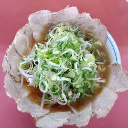 チョイスは表題。花びら満開♪チャーシューメン。待つこと10分弱で着丼しました。丼のフチ一面に敷き詰められた肉が綺麗です♪(1箇所だけの「抜け」が惜しい!)