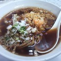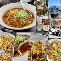 黒石駅の近くにあるつゆやきそばのお店です。あっさりした出汁スープに焼きそばがドボンされてます。もちもちの麺が良かったですね。追いソースが卓上にあります。全体の量は少なめ。