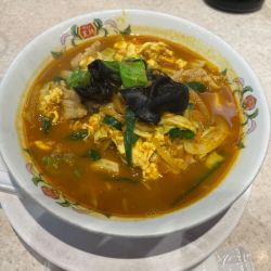 スープは、ピリッとした辛さの中にほんのり甘みもあって、バランスが絶妙。特に辛味がしっかり効いていて、思い切った味付けが好印象!食べるほどクセになる味だね。