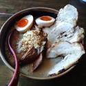 炙りチャーシューを2枚(220円)と味噌漬け煮卵(110円)をトッピングしました。