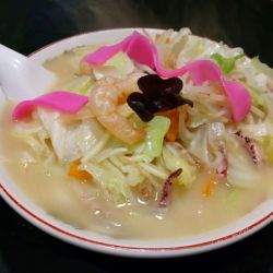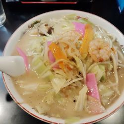 豚の旨みしっかりの濃厚スープに炒め野菜、浅蜊、烏賊、海老がたっぷり❗️ラードの風味に優しい塩味、もっちり中太なやわ麺も良い感じの長崎ちゃんぽん❗️