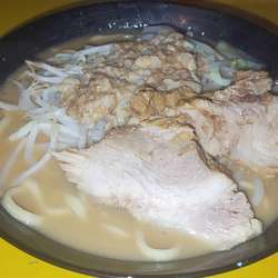 | 備考 | 自家製太麺と豚骨ベースの濃縮スープが良くからんだ二郎風ラーメン。 二郎との関連は噂では色々あるようですが、それを証明する情報は一切ありません。 とくに近大生が行列をなす店。 |