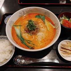 JR野洲駅(北口)から徒歩5~6分ほどの場所にあるお店です。店舗横の専用駐車場に車を停めて訪問しました。ランチ(11:00~14:00)時間で、外待ち5分ほどでの入店です。スタッフに案内されたテーブル席で注文したのは、担担麺セット:1000円(税込み)です。約10分ほどでの着丼です。サラダ、白飯、小鉢(棒棒鶏)、ザーサイが付加されたセット内容です。メインの担担麺のビジュアルも美しいです。旨い!辛さ加減とゴマペースト&ミンチなどバランスGoodで、細ストレート麺との相性も良いです。とっても美味しくいただきました。ごち... 続きを見る