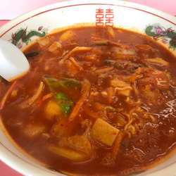 | 備考 | 辛さ4段階の辛いラーメンが売り。「ピリッ、ビリビリ、グラグラ、超グラグラ」の順で辛くなる。カプサイシン入り「とんがらし麺」も選べます。ラーメンはかなりのヴァリエーションあり。海沿いの立地から「カニラーメン」「えびラーメン」「ホタテラーメン」等のメニューもあり。中華の一品料理も多いです。 |