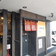 ・店の外観:赤っぽい看板、黄色い暖簾。