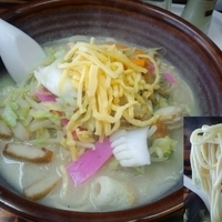 20/7/8訪問。過去分ですが、閉店しているので、足跡を残させていただきます。ちゃんぽん(900円)を。スープは、白濁していて、ほのかな甘味が心地良い。麺は、もそっとしたストレート太麺。具は、もやし・キャベツ・にんじん・玉ねぎ・いか・あさり・かまぼこ・さつま揚げ・豚肉・錦糸玉子・たけのこ。かなりバラエティ豊か。実に久しぶりに撮影NG。惜しい。