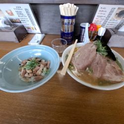 岩のりラーメンは4月で終売とのことで、こちらを注文。中盛は無料。富士山のごとくうず高く山盛りにつまれた岩のり。スープはラーショ系の豚骨醤油だが、塩味かなり控えめな優しいスープ。チャーシューが分厚くてでかく、計4枚トッピング。麺は中太ストレ... 続きを見る