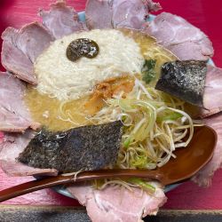 | 備考 | 食券制。お冷はセルフサービス。 スープはみそ・醤油・味噌(50円増し)の3種類 トッピングは、ねぎ、わかめ・とろろ・めかとろ(めかぶとトロロ)・コーン 普通でも量は多め、中盛(1玉追加)、大盛(2玉追加) 店員さんのおすすめ ネギとろチャーシューメン(1100円) めかとろねぎチャーシューメン(1100円) |