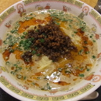 お盆に乗って辣油とともに配膳。まず白ゴマベースのような色合いに辣油がたなびくきれいなルックスにそそられる。スープを啜ると、粘度は高くないが、ゴマだれは強めで濃い味わい。軽く辣油ベースの辛みが加わっていて、... 続きを見る