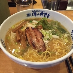 飲みの〆で初訪。ちょっと面白そうな標題を注文。出されたものは黒いというか灰色がかったスープ。正体は黒ゴマだそうだが、すするとほんのり甘味のあるやさしい味噌で、結構うまい。ゴマの風味は強くなく、あくまでも推測だが、ベースは白味噌で、色付けに黒ゴマペーストを少し溶かし込んでいるというあたりだろうか。中細縮れ麺はさほど特徴はなく標準的なもの。具がメンマ、モヤシ、茎ワカメ(?)。チャーシューは柔らかいが肉の旨味に欠けた小ぶりのものが1枚。チェーン店にしてはおいしかった(特... 続きを見る