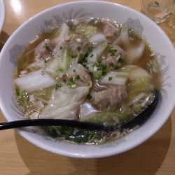 いつものように挙動不審の如く店内などを見回しながら待っていたところにワンタン麺(800円)がお届け~