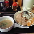 17時前に到着すると営業時間が変更になり、11:30~22:00の通し営業になったそう。ただししばらくは節電の影響で21:00LOだとのことです。店員さんに「塩チャーシューつけ麺(900円)」をお願いします。
