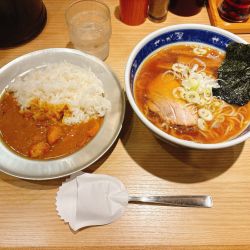 待ちはゼロですが店員さん3人ほどいて提供も早かったです!つけ麺は売り切れでしたが、深夜でもサイドメニューを販売していてかなりありがたい🍛