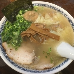 口頭オーダー後会計にて雲呑麺を塩で。こうやでは塩、醤油の選択が無かった気がしますがこちらは可能なんですね。